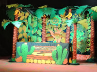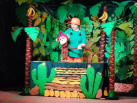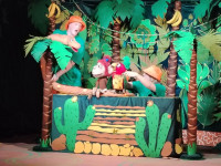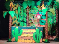 Сахнада джунгли тұрғындарына жан бітеді: көңілді маймыл, мейірімді піл, сөйлейтін тотықұс және жұмбақ боа. Олар бірге көңілді оқиғаларға, күлкілі түсініспеушіліктерге және күтпеген жаңалықтарға тап болады. Кішкентай көрермендер не болып жатқанын көріп қана қоймай, өздерін осы оқиғаның нағыз қатысушылары ретінде сезіне алады.